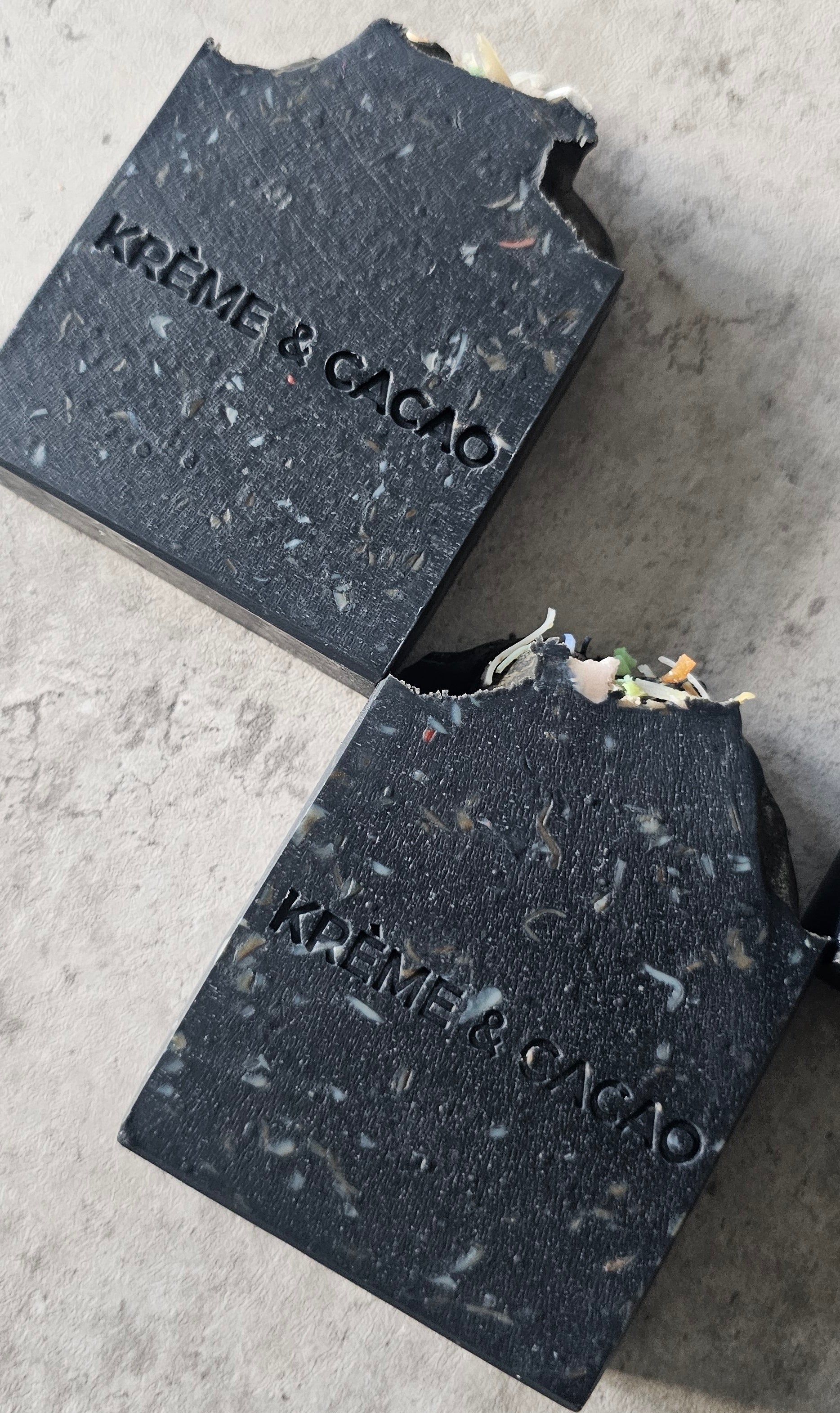 Laissez-vous emporter par la douceur d’une nuit d'hiver avec ce savon artisanal enrichi en charbon activé. Composé d’huile d’olive, de noix de coco et de beurre de karité, il nettoie en profondeur tout en respectant la peau. Le charbon aide à détoxifier et purifier les pores, laissant la peau nette et fraîche. Son parfum envoûtant de crème de coconut et de vanille enveloppe chaque douche d’un voile gourmand et apaisant. J'ai également réutilisé des copeaux de savons afin de lui donner sa touche étoilée et éviter le gaspillage et les déchets.